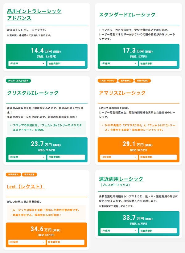 品川近視クリニックでは、実施できる施術を6種類※3も用意!