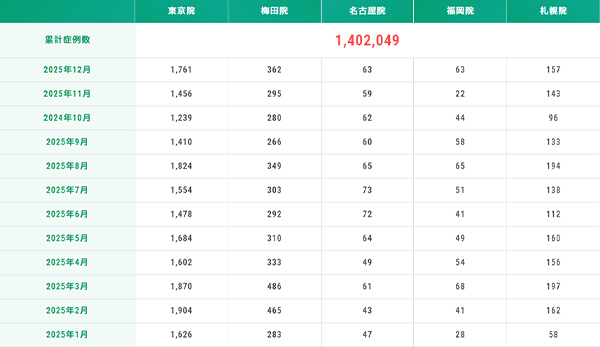 全国5院 北海道・東京 愛知・大阪・福岡 |